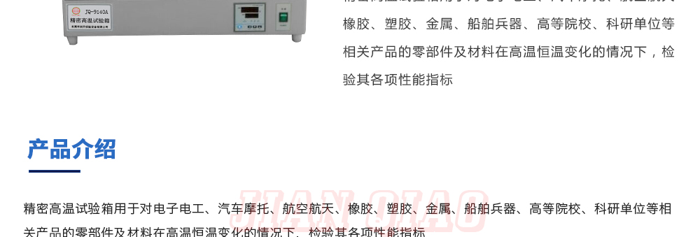 用途:精密高溫試驗箱用于對電子電工、汽車摩托、航空航天、橡膠、塑膠、金屬、船舶兵器、高等院校、科研單位等相關產(chǎn)品的零部件及材料在高溫恒溫變化的情況下,檢驗其各項性能指標