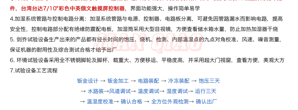 用途:步入式恒溫恒濕試驗室可為汽車、大型部件、大尺寸半成品和成品模擬特定的環境條件。如樣品評估、研發測試生產測試,加速壓力測試,可靠性測試,故障分析,以及其他需要環境模