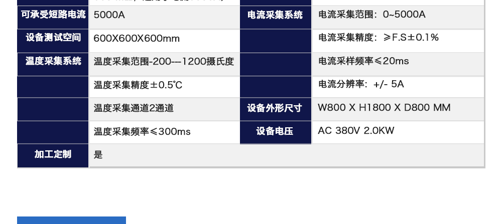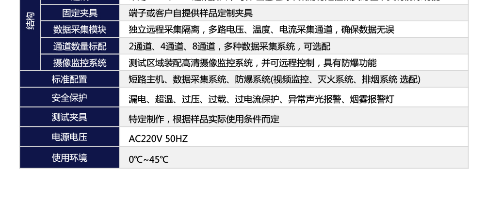 用途:大電流短路試驗裝置綜合多種電池短路試驗標準要求而設(shè)計,按標準要求短路裝置必須符合內(nèi)阻范圍≤5mΩ,從而獲得試驗要求的最大短路電流;另外在短路裝置的線路設(shè)計上也須能夠承