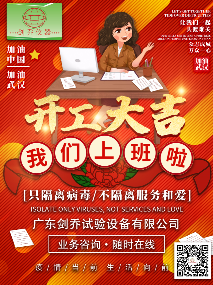 為加強(qiáng)新型冠狀病毒感染肺炎疫情防控工作,有效減少人員聚集,阻斷疫情傳播,更好保障職工生命安全和身體健康,按照黨中央、國務(wù)院防控工作部署,根據(jù)《中華人民共和國突發(fā)事件應(yīng)對法》《中華人民共和國傳染病防治法》和廣東省突發(fā)公共衛(wèi)生事件一級(jí)響應(yīng)機(jī)制的有關(guān)規(guī)定,劍喬儀器延長2020年春節(jié)假期,已于2月10日正式復(fù)工。