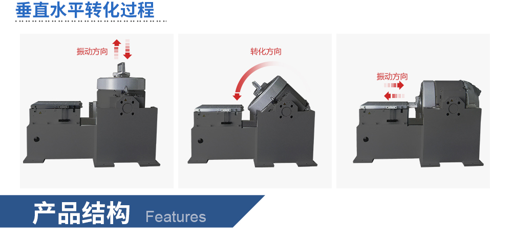 帶水平滑臺的電動振動臺可以用于水平和垂直試驗,兩個方向的切換方式簡單,翻轉方便。