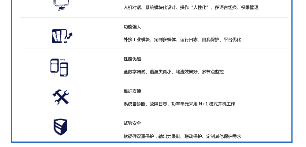用途:功率放大器由邏輯單元、功率單元和控制單元構(gòu)成,具有操控智能化、穩(wěn)定可靠、配置靈活、高效節(jié)能、結(jié)構(gòu)緊湊、維護方便等突出優(yōu)點。