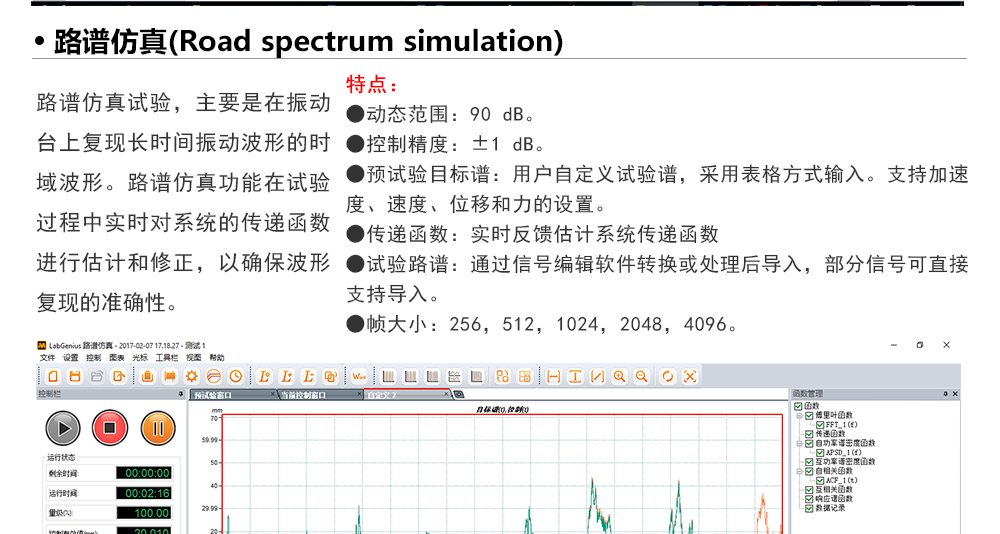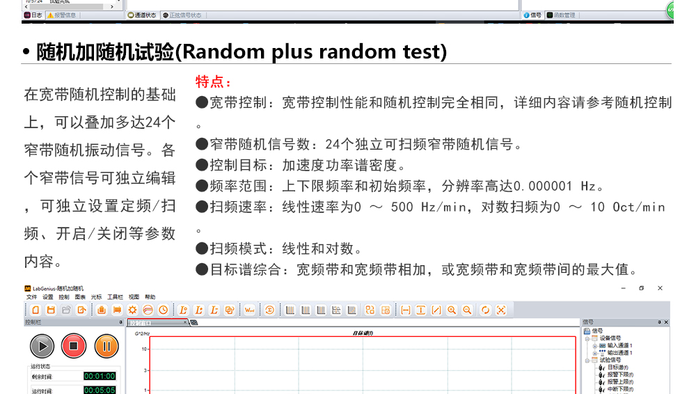 用途:正弦試驗可以控制振動臺實現定頻(駐留)、掃頻等振動試驗??刂扑惴ㄖ胁捎昧烁櫈V波的幅值以及相位檢測算法,可以實現對控制信號的準確反饋以及實時的閉環控制。